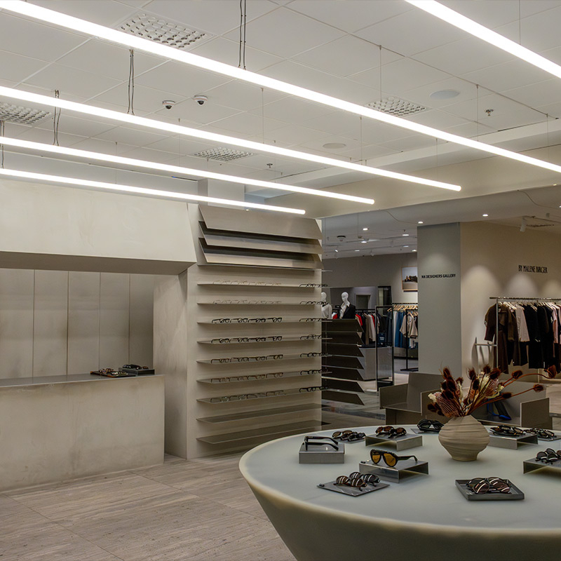 Vi levererar skräddarsydd LED-belysning som byggs in i inredning och tak i offentliga miljöer som butik, restaurang, kontor, hotell & mässa.