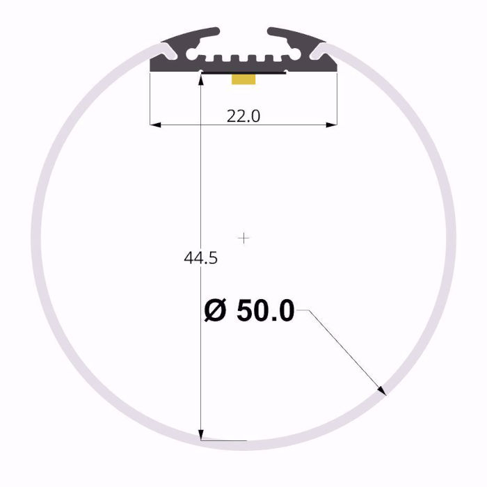 Robust, rund LED-profil med 50 mm diameter – idealisk för att skapa linjära armaturer med modern och iögonfallande design. Kan monteras dikt an i tak eller vägg, alternativt pendlas för mer visuell effekt.
