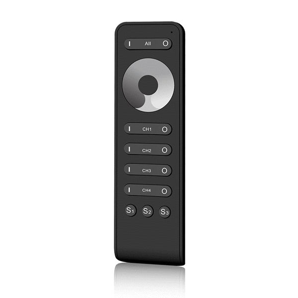 Denna fjärrkontroll paras med en styrenhet eller transformator som har 4st utgångar. Till dessa kan 2, 3 eller 4 olika ledstrips kopplas. Och dessa ledstrips kan sedan dimras var för sig med denna fjärrkontroll.