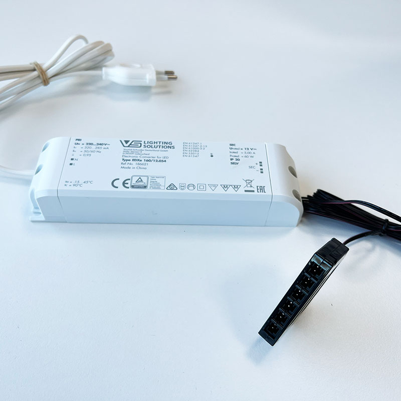Inkopplingspaket för inkoppling av 12V garderobs-ledlister och små spottar. Dessa ledlister och spottar kommer med små mini-kontakter vilka passar i grenboxen som kommer i inkopplingspaketet.