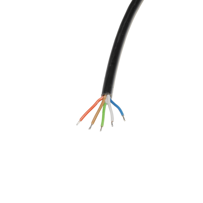 Kabel med 5 ledningar. Passar för LED-strips med fyra ledare (RGBW).