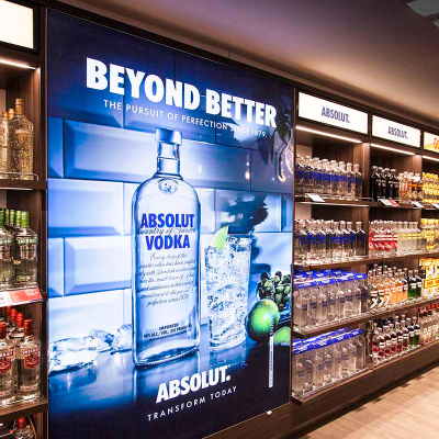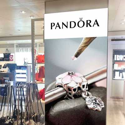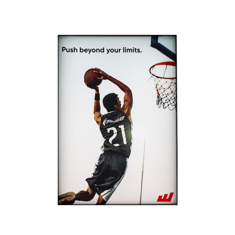 Ljustavla med textiltryck. Ger snyggt intryck med ljus hela vägen ut i kanterna. blir riktigt snyggt i butiker och på mässor.