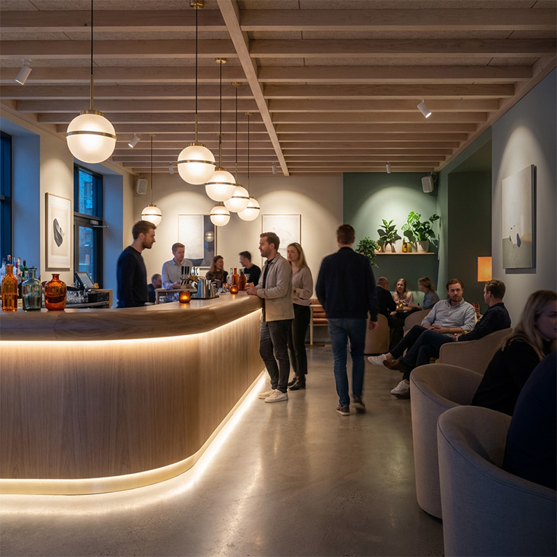 Vi levererar skräddarsydd LED-belysning som byggs in i inredning och tak i offentliga miljöer som butik, restaurang, kontor, hotell & mässa.