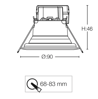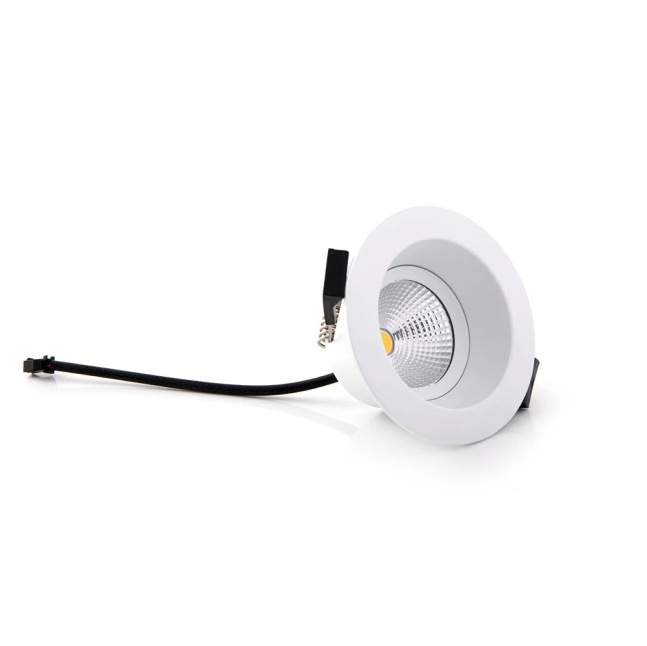 Snygg, dimbar LEDspot med inbyggd ljuskälla som kan fällas in i hål från 68 till 83mm. Konstruerad så att denna spotlight kan fällas in direkt i isoleringen. Ljuskällan är intryckt en bit vilket medför en lägre blädningseffekt. Reflektorn ligger på 36 grader och du kan välja mellan 2700K och 3000K, både med mycket god färgåtergivning (RA>90).