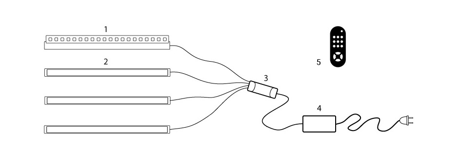 För att sedan styra detta behöver du en kontrollenhet/styrdon. Kontrollenheten kopplar du in mellan LED-strip och transformator (Se bild). Önskar du koppla med DC-kontakter (snabbkoppling) så har vi en SKY-kontrollenhet med DC. Önskar du styra RGB/RGBW/Dynamisk vit så har vi en SKY-kontrollenhet med fyra kanaler för det. Önskar man en vanlig standard enkanals SKY-kontrollenhet så fungerar det utmärkt.