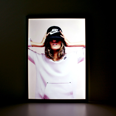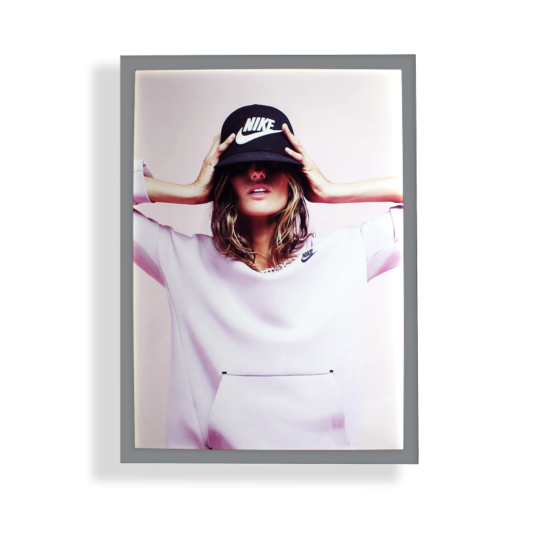Snäppram upplyst med LED. Storlek 70x100cm. Endast 18mm tunn och hög kvalitet på material och ljus. Den skyddande transparanta plasten har antireflex vilket gör att budskapet kan ses från alla vinklar utan störande solreflexer.
