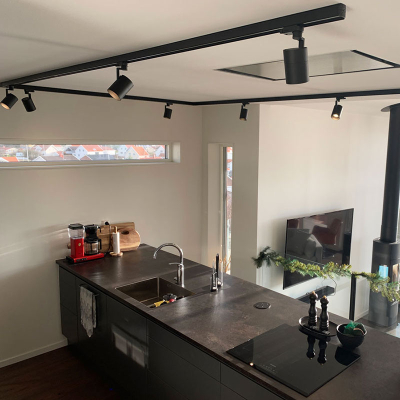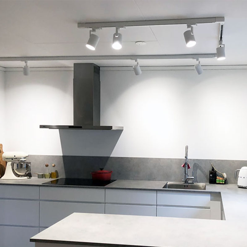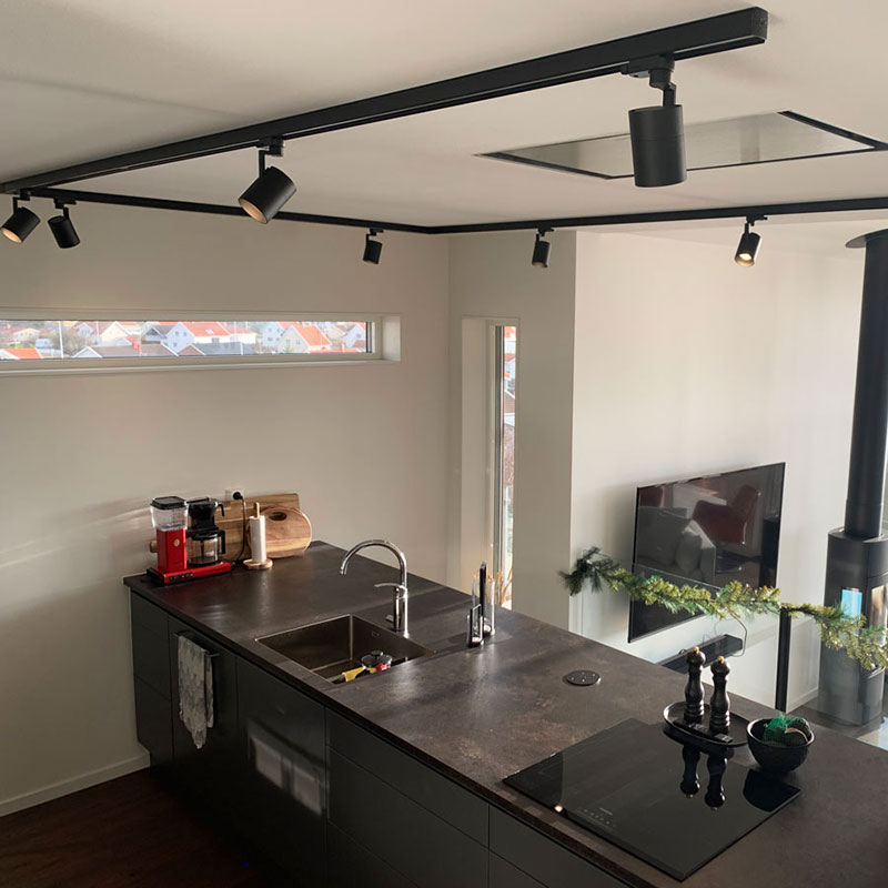 Nedan kan du köpa ett färdigt kit med högkvalitativa svarta spotlights på skena, perfekt för köket, vardagsrummet eller hallen!