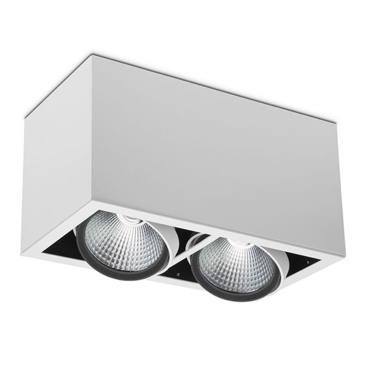 DL-Z2 BOX är en takspotlight för utanpåliggande montage eller nedpendlat montag. Passar till butiker, restauranger, lobbys m.m där man vill ha riktbar kraftfull spotbelysning. Spottarna är riktbara var för sig