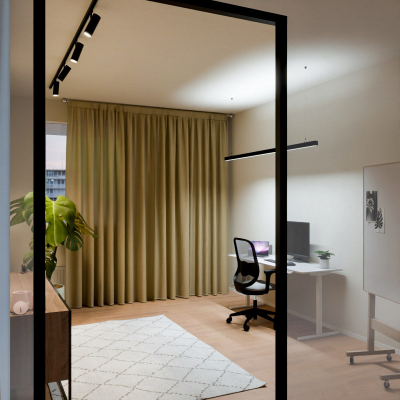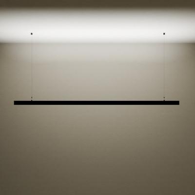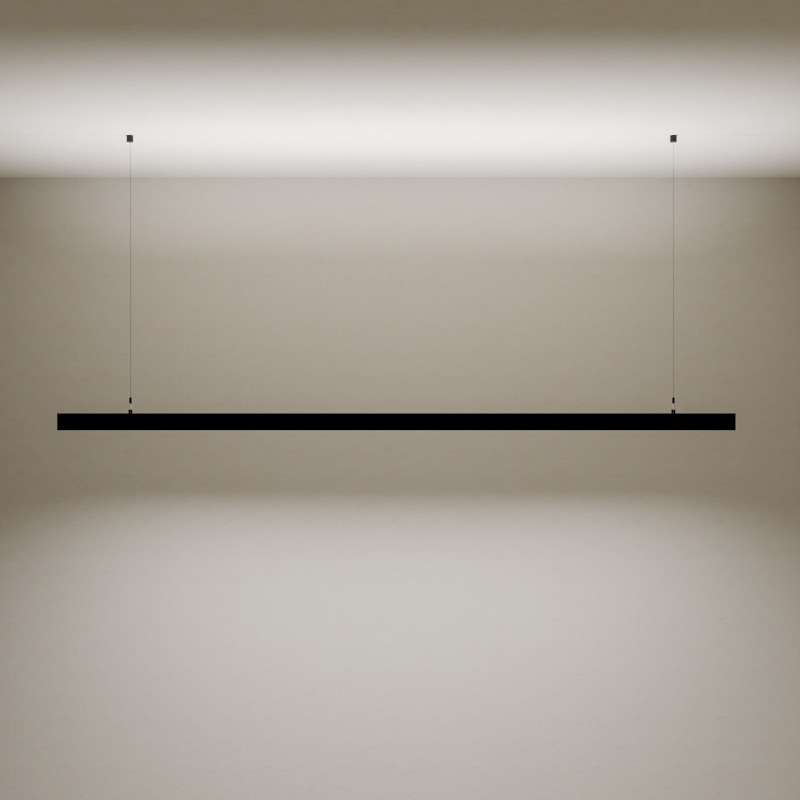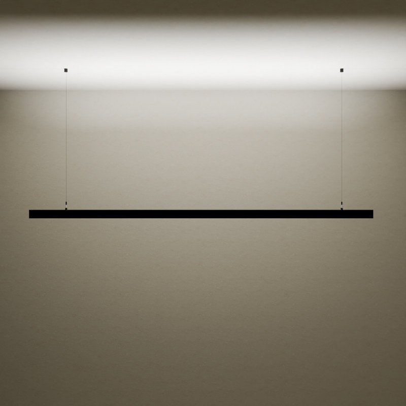 Topup är en rak pendlad takarmatur med både upp- och nedljus. 2 meter lång. Upp- och nedljuset styrs separat via Casambi styrning, dvs man kan styra ljuset via app, fjärrkontroll eller strömbrytare på väggen.