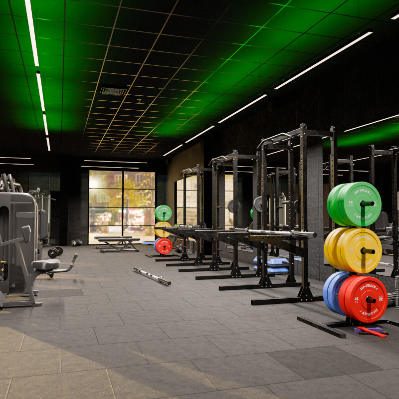 Superhäftig armatur där du kan variera vanligt vitt ljus med färgat ljus. Passar gym, restauranger och eventlokaler.