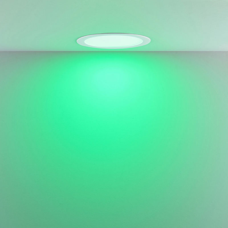 Rund RGBW led panel. Perfekt för effektbelysning i bar, restaurang eller gym. Det vita ljuset har ljusfärg 3000K.