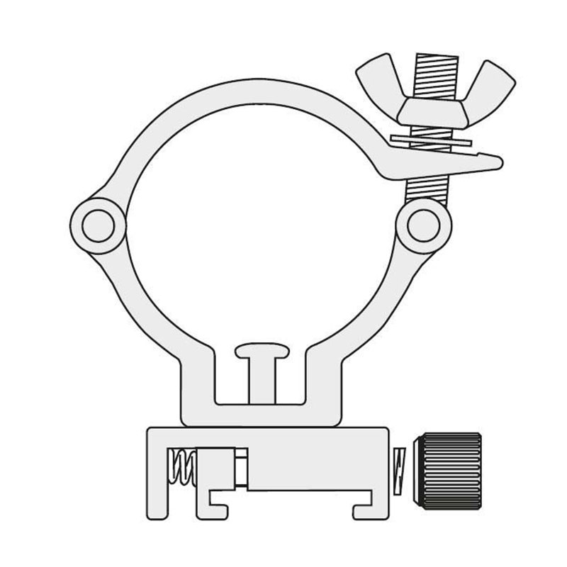 Fäste i krom för att hänga standard 3-fas skena för belysning i tross. Passar perfekt till mässor och event där man tillfälligt vill hänga upp skenor i tross konstruktioner. Enkelt att ta upp och ner skenan och flytta med till nästa event.