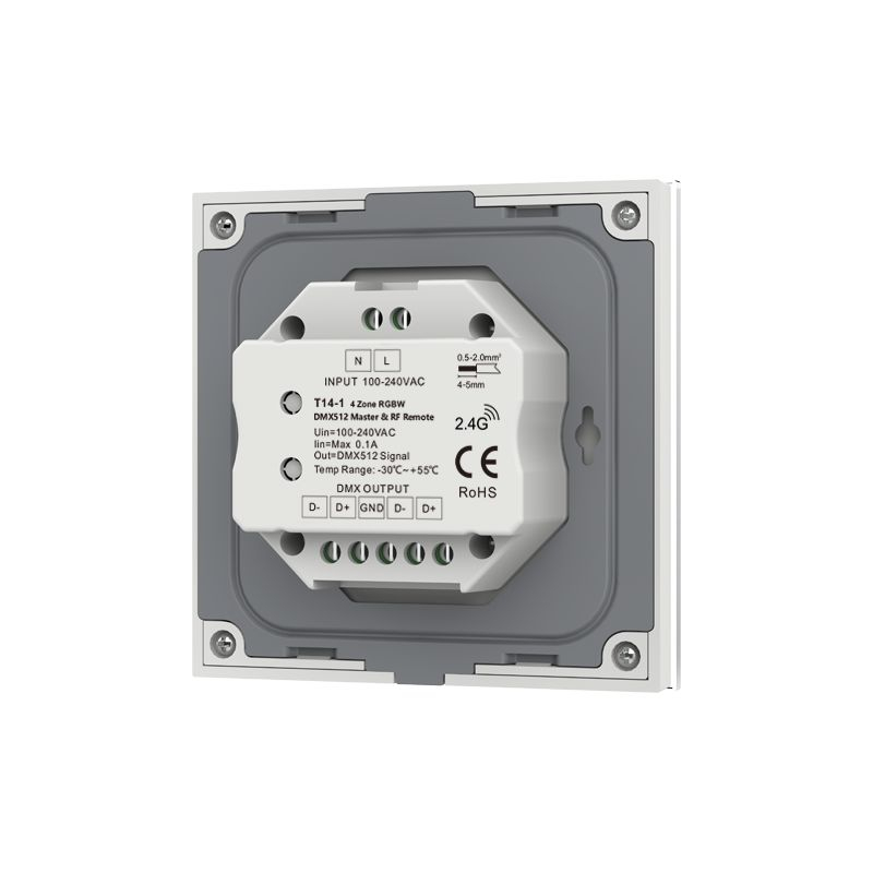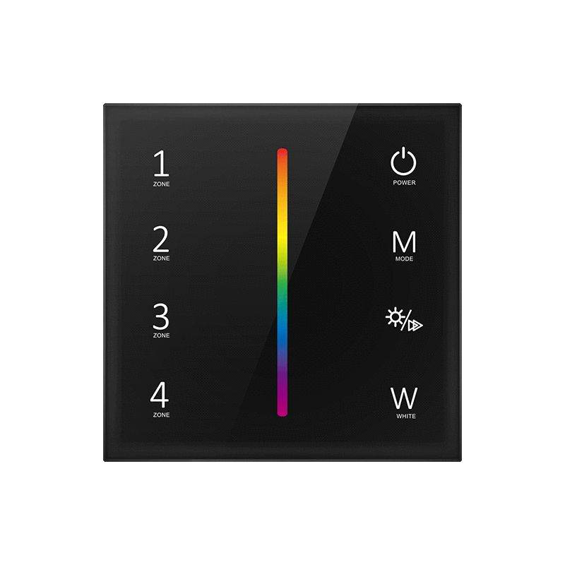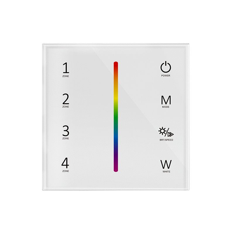 Väggkontroll i SKY-serien som används för att styra ljusfärg och ljusstyrka på rgbw ledlister och ledstrips. Kopplas till 230V och pratar trådlöst med kontrollenheten eller drivern.