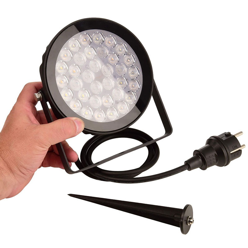 | Medföljer | Levereras med fäste, markspjut och anslutningskabel 1,5m. Köp till fjärrkontroll och arm |