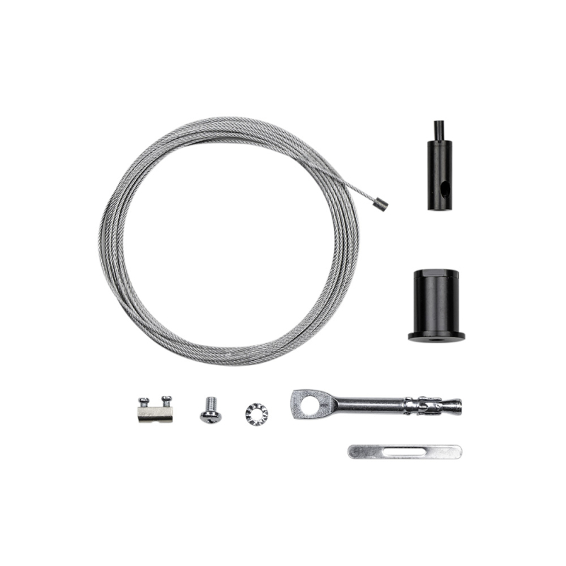OBS. Detta kit innehåller en vajer. Ska du pendla ned exempelvis en 2m skena så behöver du två stycken vajer-kit. Är det flera längder behöver du bygga på med fler vajer-kit.